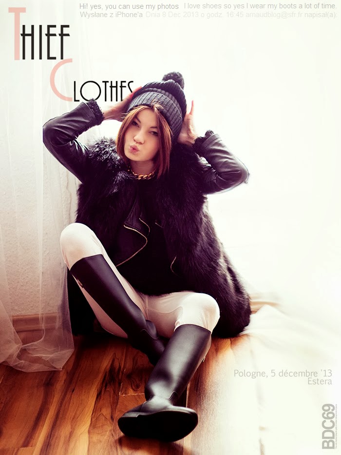 - http://45stopni.blogspot.fr/2013/11/kaloszki.html Ania, from Poland, first considers her boots as riding boots which she uses as rain boots. A black total look several times seen, but worn in the manner of Ania, it has a lot of style: a stunning skinny jean instead of bland leggings, a a white pendant on a white striped sweater, a black leather jacket... She writes that she wears as soon as possible and Solicitating for his job, she works in tourism. Congratulations to Ania whose blog is mainly about cosmetics.- http://thiefclothes.blogspot.co.uk/2013/12/winter-is-coming.html Un look bien agréable à voir avec un pantalon blanc ce qui est assez rare. Cette jolie Polonaise me précise qu'elle porte souvent ses bottes de cheval. Un post sans beaucoup de détail mais des poses et photos très réussies pour présenter ce look que vous adorerez.