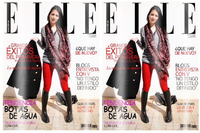 You probably remember Sara from Barcelona, she put up in "Girl's Blog" #80 in rubber riding boots and red skinny jeans. Rotten weather has not spared Catalonia and Sara posted last week two consecutive looks both based on her Decathlon riding boots: it seems she knows perfectly my preferences on this topic! Both outfits are great.