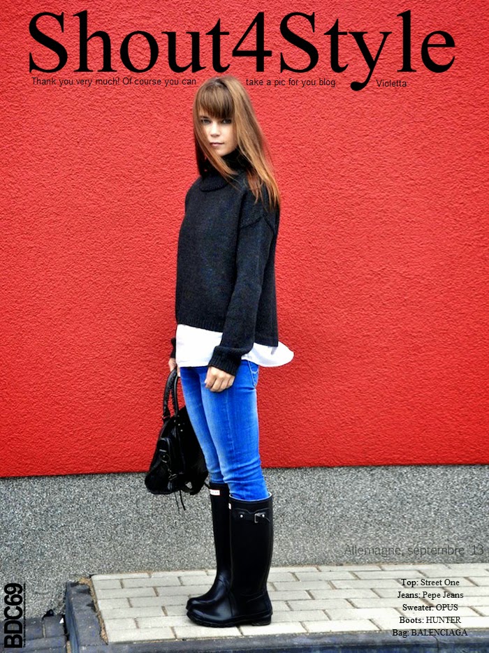 The blog still exists but the post, no. The fact remains Violetta, beautiful german girl, gave me her consent there is a year and half to show her look herein. Violetta appears more "woman" in recent articles, the site has been beautifully redesigned; I retained its graphic design as it was visible at the release of the post. What I wished to show you is this style full of freshness and simplicity. I am much less Hunter that "rubber riding boots" but both look and photography are superb. Violetta told me nothing more...